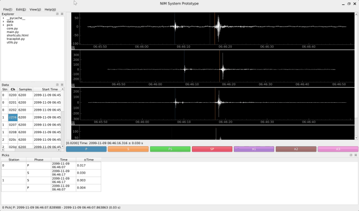 2025/10/26 *プロトタイプ画面* ## 動機 かねがねGUIの勉強をしてみたいと思っていた。 ところで、一般的に日本においては、地震波形の読み取りにはWINシステムやSACが使われる。 地震波形をクリックしてP波やS波の到達時刻を記録できる優れものだ...